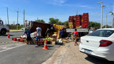 Um caminhão carregado de frutas tombou no KM 2,4 da BR-316, nas proximidades do bairro Tabuleta, na zona Sul de Teresina, na…