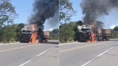 Um caminhão de carga pegou fogo nesta sexta-feira (21) e interrompeu o trânsito no trecho da BR-343, entre as cidades…