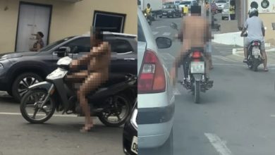 Homem é flagrado pilotando moto sem roupa em Floriano