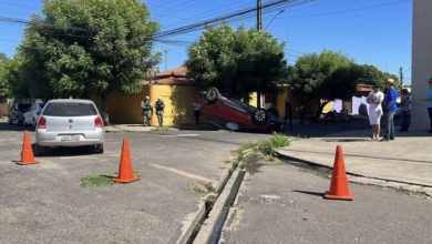 Um carro capotou após colidir com outro no cruzamento das ruas Dr. Arêa Leão com Pedro II, no bairro Monte…