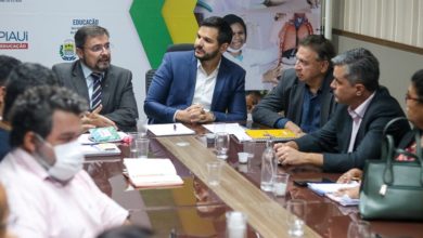 O secretário Estadual de Educação, Washington Bandeira e outros representantes do Governo receberam os representantes do Sindicato dos Trabalhadores da…