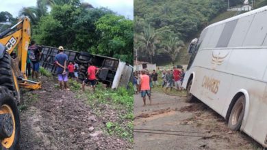 O ônibus com integrantes da banda de forró Canários do Reino tombou na madrugada desta segunda-feira (20) na PI-212, na…