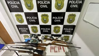 O cabo da Polícia Militar Cleiton Alves Landim e mais quatro suspeitos de tráfico de armas e munições, foram presos…
