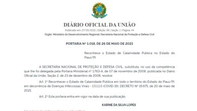Governo Federal reconhece estado de calamidade pública no Piauí em decorrência da Covid-19